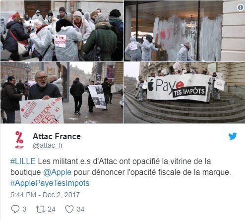 Στο Παρίσι, ακτιβιστές του οργανισμού Attac προχώρησαν σε κατάληψη του καταστήματος της Apple στο κέντρο της πόλης. Ο συγκεκριμένος οργανισμός υπερασπίζεται τα δικαιώματα των πολιτών και διεκδικεί κοινωνική και περιβαλλοντική δικαιοσύνη.