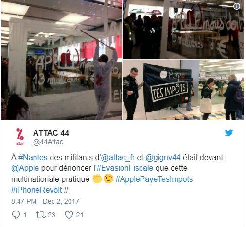 Παρόμοιες διαμαρτυρίες πραγματοποιήθηκαν σε καταστήματα της Apple και στη Μασσαλία, τη Λυών και τη Λιλ.