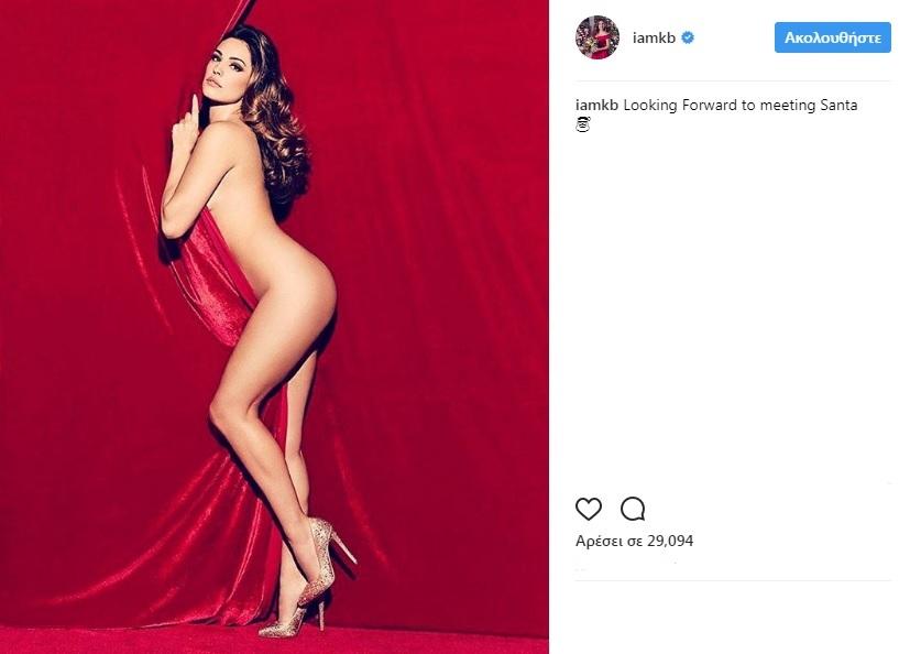 Η μελαχρινή καλλονή εμφανίζεται τελείως γυμνή με μόνο μια κόκκινη κουρτίνα να καλύπτει τα… επίμαχα σημεία, και το σχόλιο: «Περιμένοντας τον Άγιο Βασίλη».