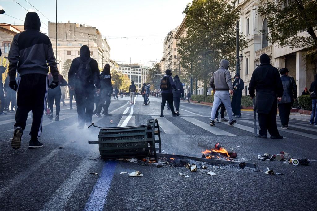 Το «κρυφτούλι» με τους αστυνομικούς για αρκετή ώρα, με τους νεαρούς να πετούν βόμβες μολότοφ και να στήνουν οδοφράγματα με κάδους απορριμμάτων στους οποίους έβαζαν φωτιά, στις οδούς Πανεπιστημίου, Σταδίου και Ακαδημίας.