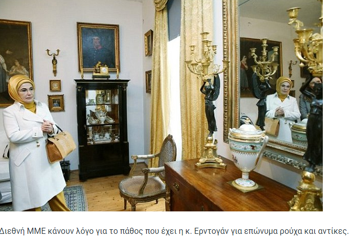 H Εμινέ Ερντογάν δέχεται αυστηρή κριτική για το ότι κάνει το ένα ταξίδι για ψώνια μετά το άλλο, και ότι έχει πάθος για επώνυμα ρούχα και ακριβές αντίκες.