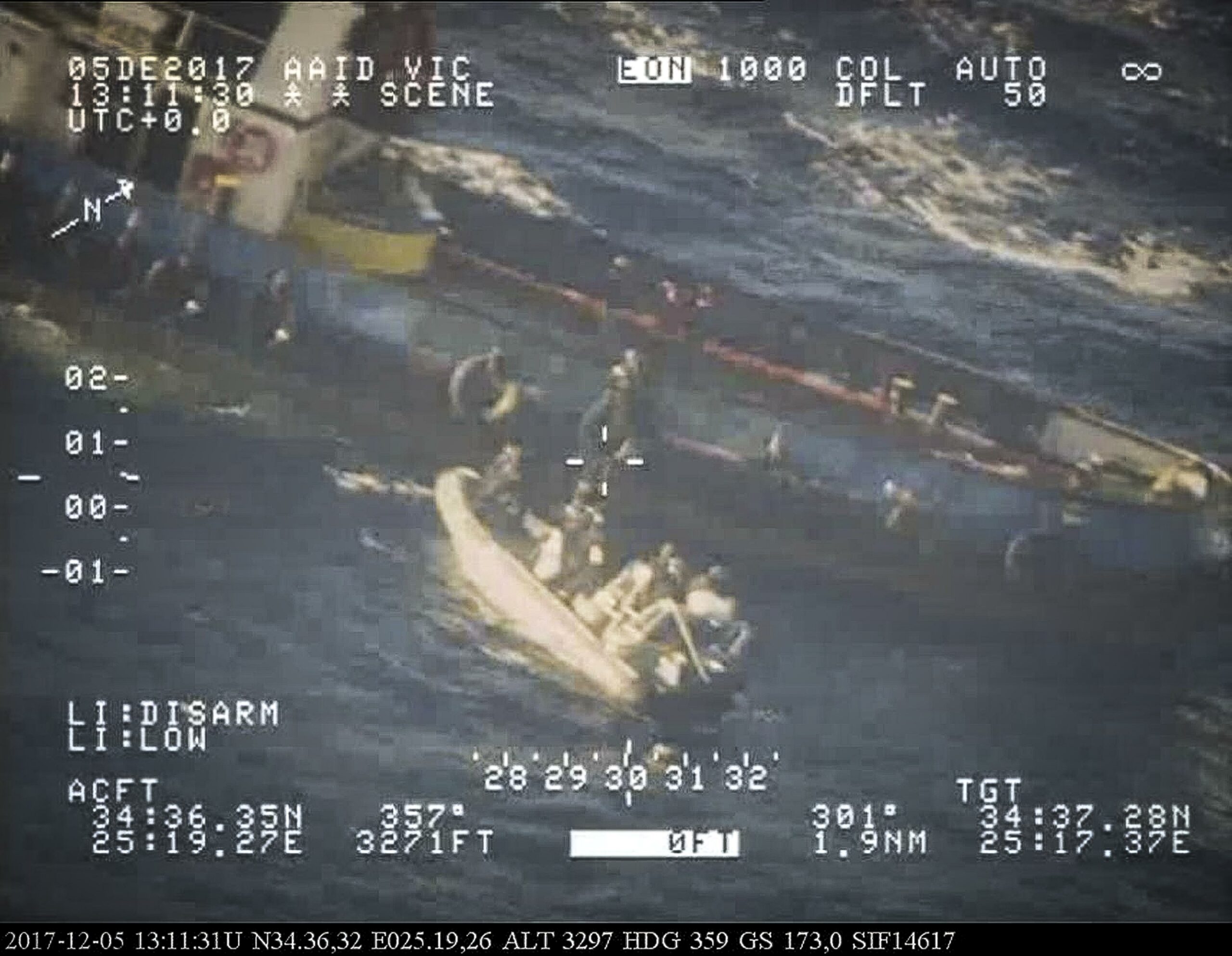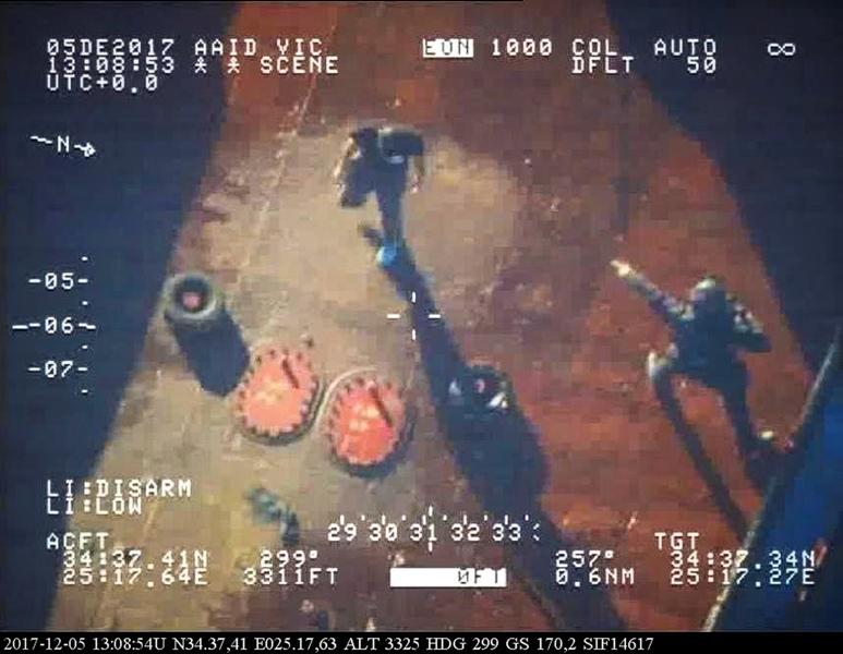 Σε συνεργασία με αεροσκάφος του Frontex, εντόπισε το ρυμουλκό “ANDREAS” να πλέει στη θαλάσσια περιοχή νότια της Κρήτης. Αφού ελήφθησαν υπόψη οι δυσμενείς καιρικές συνθήκες, η πορεία του ύποπτου σκάφους, η ασφάλεια των στελεχών Λ.Σ.-ΕΛ.ΑΚΤ. που θα επιχειρούσαν καθώς και ο επιδιωκόμενος αιφνιδιασμός του πληρώματος του ύποπτου πλοίου, αποφασίστηκε και πραγματοποιήθηκε η άμεση ακινητοποίησή του με ρεσάλτο σε αυτό από τους πλέον εκπαιδευμένους βατραχανθρώπους του Λιμενικού Σώματος – Ελληνικής Ακτοφυλακής.