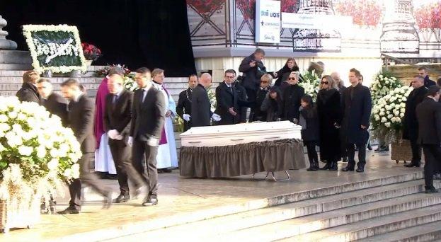 Παρόντες στην εκκλησία είναι επίσης η πρώην σύζυγός του Σιλβί Βαρτάν, ο γιος του Ντέιβιντ Χαλιντέι και η κόρη του Λορά Σμετ.