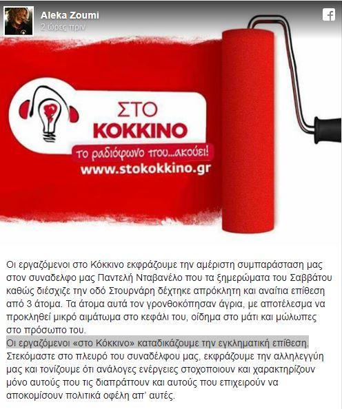 Η δημοσιογράφος του Κόκκινου, Αλέκα Ζουμή, ανέφερε σε ανάρτησή της: