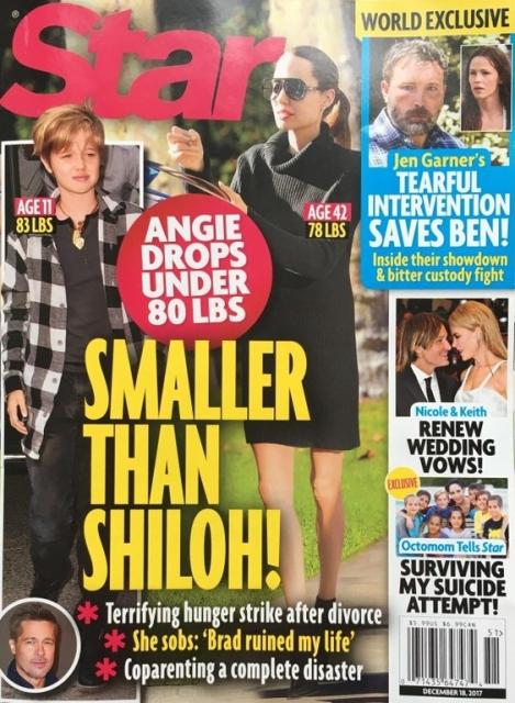 Το νέο εξώφυλλο που περιοδικού Star έχει τον τίτλο «Πιο αδύνατη από την Shiloh» και το δημοσίευμα αποκαλύπτει πως η Jolie ζυγίζει πλέον 35 κιλά.