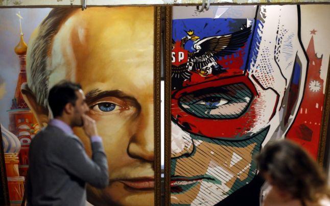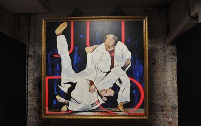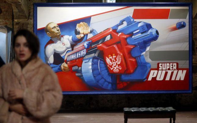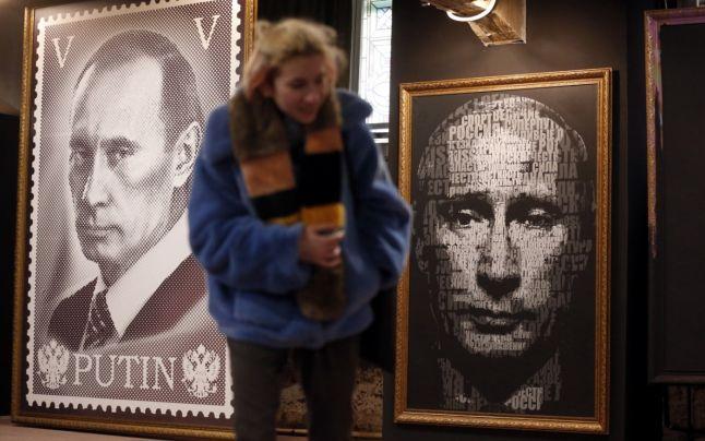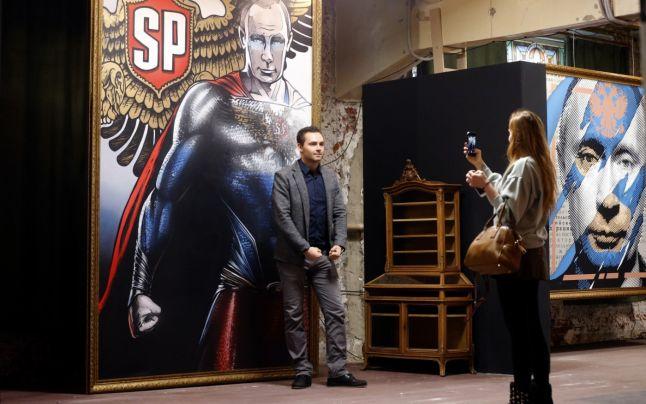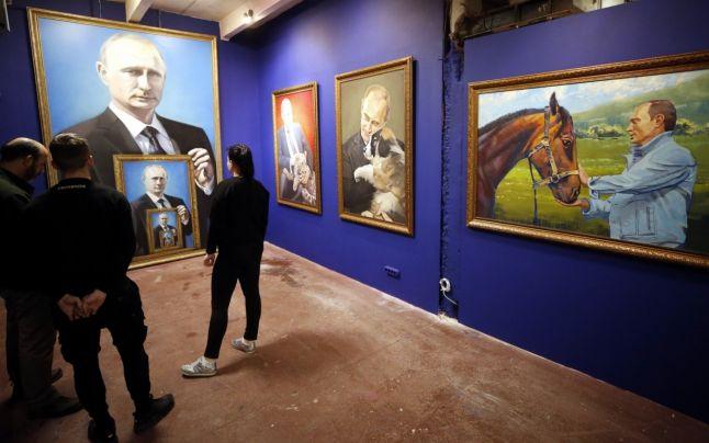 Σε μια μεγάλη αίθουσα παλιού εργοστασίου που έχει μετατραπεί σε μουσείο, στο κέντρο της Μόσχας, οι επισκέπτες μπορούν να θαυμάσουν τον Βλαντίμιρ Πούτιν την ώρα που χαϊδεύει ένα κουτάβι, κραδαίνει μια ρωσική σημαία ενώ ιππεύει σε μια αρκούδα, ρίχνει από τον εκτοξευτήρα ρουκετών πυραύλους στα χρώματα της Ρωσίας. “Κάθε πίνακας υπογραμμίζει μια ιδιότητα και μια αξία του προέδρου”, εξηγεί η Γιούλια Τζιούζεβα, μια από τις διοργανώτριες της έκθεσης.