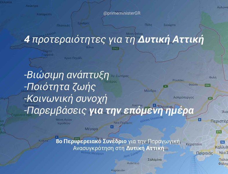 «Στη Δυτική Αττική συμπυκνώνονται οι παθογένειες, οι αδικίες και η ταξικότητα ενός ολόκληρου μοντέλου ανάπτυξης που χρεοκόπησε πριν από πέντε χρόνια. Αλλά και η μονομέρεια των πολιτικών διαχείρισης της οικονομικής κρίσης από το 2010 και μετά», επισήμανε ο πρωθυπουργός στην ομιλία του στο στο 8ο Περιφερειακό Συνέδριο για την Παραγωγική Ανασυγκρότηση στη Δυτική Αττική.