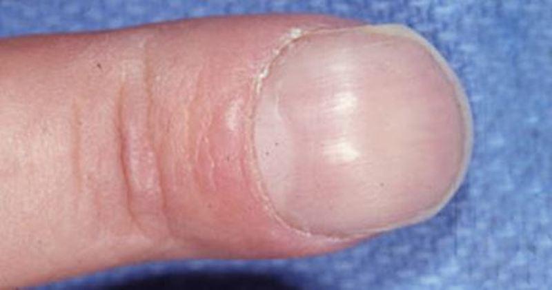 Συμβαίνει όταν οι άκρες των δακτύλων μεγεθύνονται και τα νύχια καμπυλώνονται γύρω από τις άκρες των δακτύλων. Είναι κάτι που εκελίσσεται αργά και προοδευτικά στη διάρκεια του χρόνου. Μερικές φορές είναι το αποτέλεσμα χαμηλού οξυγόνου στο αίμα και θα μπορούσε να είναι και σημάδι διαφόρων τύπων της ασθένειας των πνευμόνων. Συνδέεται επίσης με τη φλεγμονώδη νόσο του εντέρου, την καρδιαγγειακή νόσο, την ηπατική νόσο και το AIDS.
