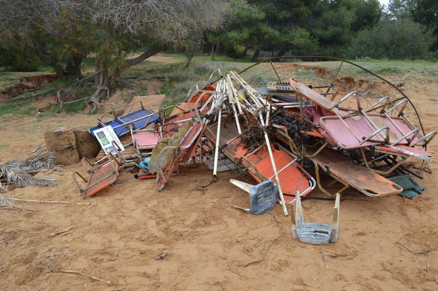 Εκατοντάδες είναι τα σκουπίδια που ανασύρθηκαν ενώ η πλειοψηφία τους είναι ομπρελοκαθίσματα που παρασύρθηκαν από την παραλία στη θάλασσα.