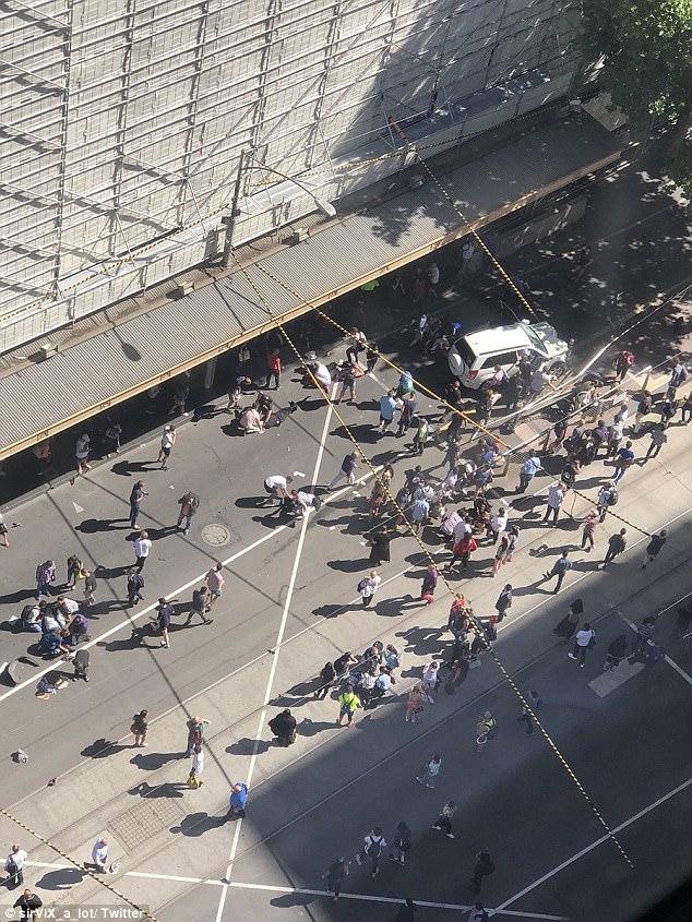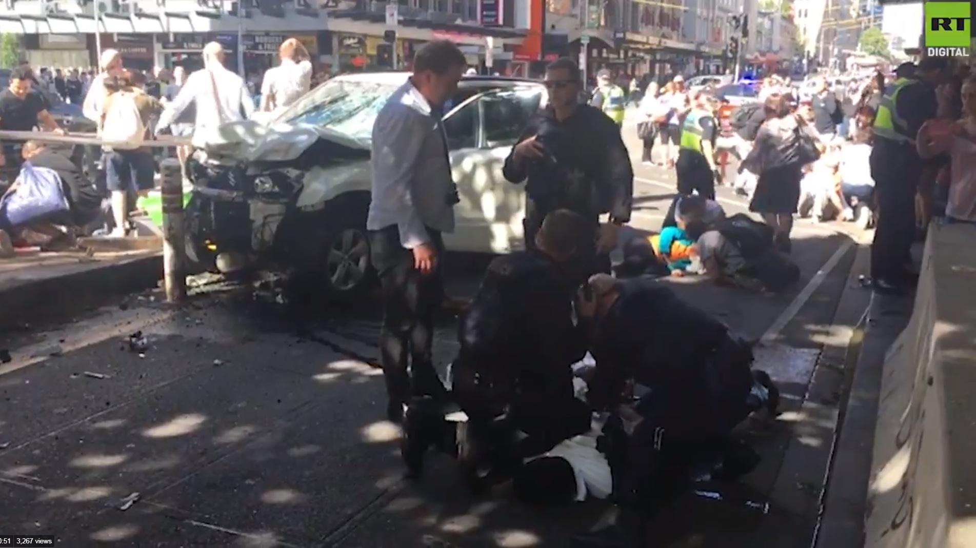 Αυτόπτες μάρτυρες δήλωσαν ότι το αυτοκίνητο παραβίασε τον κόκκινο σηματοδότη σε πολυσύχναστη διασταύρωση και έπεσε με μεγάλη ταχύτητα επάνω στο πλήθος των πεζών.Αυτόπτης μάρτυρας δήλωσε στον ραδιοφωνικό σταθμό της Μελβούρνης 3AW ότι άκουσε κραυγές και είδε ανθρώπους «να πετούν προς όλες τις κατευθύνσεις».