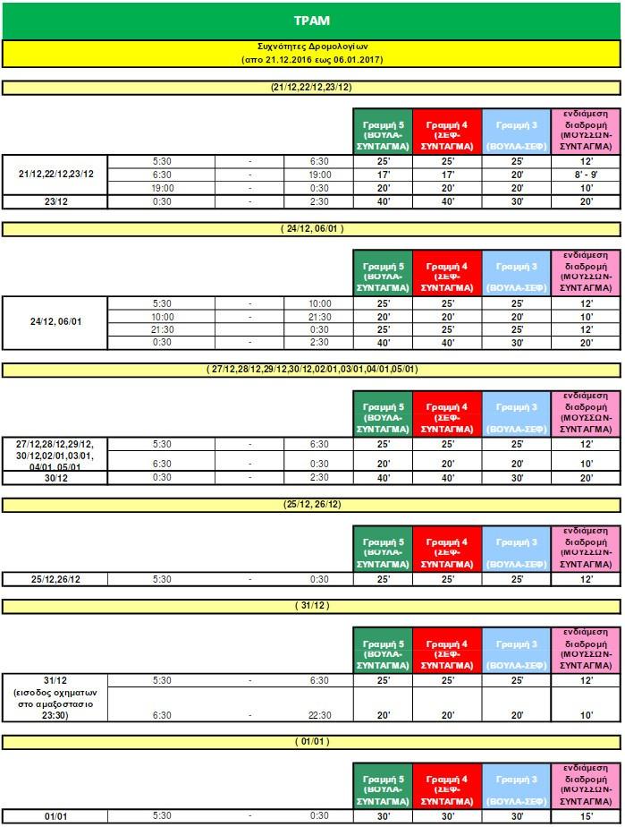 Σε ό,τι αφορά στα μέσα σταθερής τροχιάς, η ΣΤΑ.ΣΥ ανήρτησε τη συχνότητα διέλευσης των συρμών κατά τις ημέρες των γιορτών: