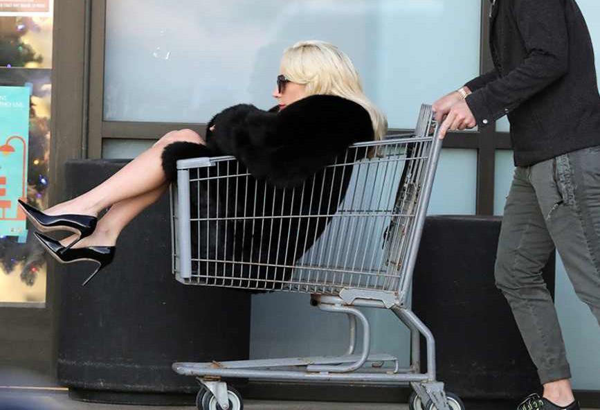 Mόνο που η Lady Gaga δεν θα μπορούσε να πάει στο σούπερ μάρκετ με τις φόρμες, αλλά φρόντισε να βάλει ψηλοτάκουνες γόβες και μια κατάμαυρη γούνα και μετά μπήκε μόνη της μέσα στο καρότσι του σούπερ μάρκετ και απαίτησε από το συνοδό της να την τσουλάει παντού.