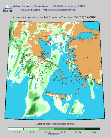 Πρόγνωση του καιρού την Πέμπτη 28/12 στις 03.00 τα ξημερώματα.