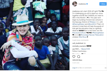 Η διάσημη ποπ σταρ ανακοίνωσε, μάλιστα, ότι το 2018 πρόκειται να ανοίξει περισσότερα σχολεία στο Μαλάουι, καλώντας και τους υπολοίπους να πράξουν αναλόγως…