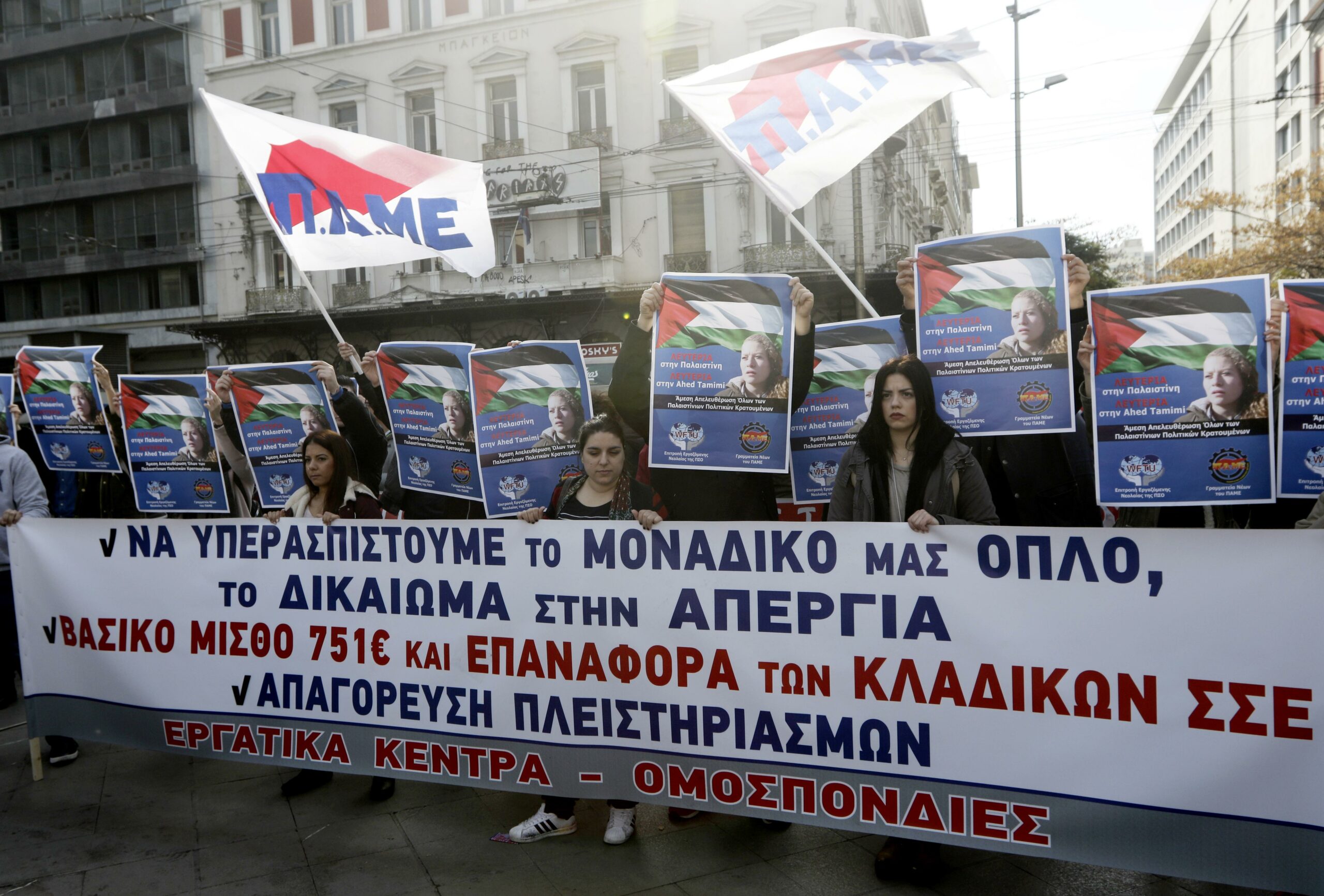 «Κάτω τα χέρια από την απεργία, χέρι δεν θα βάλετε στα σωματεία» και «Όχι στα χαράτσια και τη φοροληστεία, να πληρώσει τώρα η πλουτοκρατία» τα συνθήματα που φωνάζουν οι απεργοί διαδηλωτές στην Αθήνα.