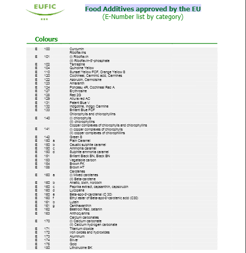 Σύμφωνα με τη νομοθεσία της ΕΕ, όλα τα πρόσθετα τροφίμων πρέπει να παίρνουν έγκριση από ειδική επιτροπή, για να μπορούν να χρησιμοποιούνται σε τρόφιμα που διατίθενται εντός των χωρών-μελών της Ένωσης.