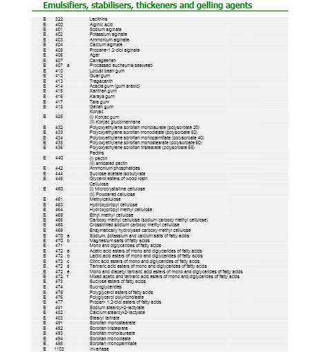 Στην Ευρωπαϊκή Ένωση όλα τα πρόσθετα τροφίμων προσδιορίζονται από έναν κωδικό αριθμό με την ένδειξη “E”. Είναι υποχρέωση κάθε παραγωγού και πωλητή να αναγράφονται όλοι αυτοί οι κωδικοί στην ετικέτα του προϊόντος που φτάνει στα χέρια του καταναλωτή. Οι ετικέτες των προϊόντων πρέπει να προσδιορίζουν τόσο την λειτουργία της πρόσθετης ουσίας στο τελικό προϊόν (π.χ. χρώμα, συντηρητικό) και την συγκεκριμένη ουσία που χρησιμοποιείται, είτε με άμεση αναφορά στον κατάλληλο κωδικό “Ε” ή στο όνομα του (π.χ. Ε 415)