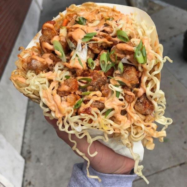 Το ιαπωνικό «τυλιχτό» αποτελείται από μια πίτα από ramen, δηλαδή, σταρένια ζύμη για noodles, μέσα στην οποία μπαίνουν κομμάτια από τηγανητό κοτόπουλο, noodles, λαχανικά και κάποιες σος.