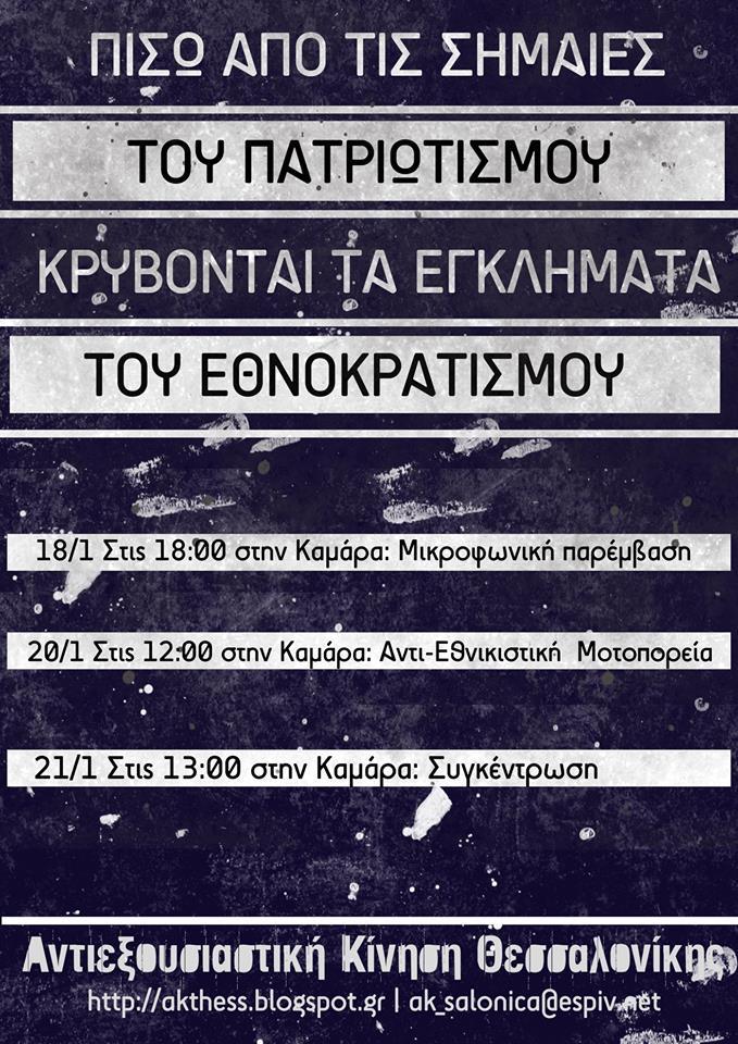 Αντισυγκέντρωση με αφορμή το συλλαλητήριο που διοργανώνεται για τη Μακεδονία, θα πραγματοποιήσουν αντιεξουσιαστές.