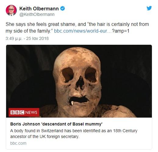 Άλλοι χρήστες του Twitter στάθηκαν στην ομοιότητα του Μπόρις Τζόνσον με τη σορό.
