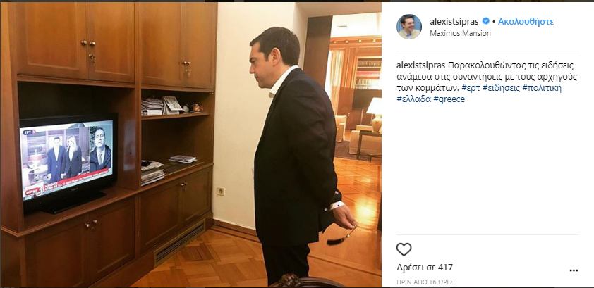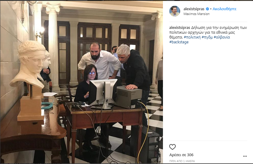 Στο πλευρό του ήταν το επικοινωνιακό του επιτελείο και ο κυβερνητικός εκπρόσωπος κ. Δημήτρης Τζανακόπουλος. Οι φωτογραφίες δημοσιεύθηκαν στους λογαριασμού που διατηρεί ο πρωθυπουργός στα social media και δείχνουν τον επικοινωνιακό πυρετό που επικρατεί στο Μέγαρο Μαξίμου όταν σβήσουν οι κάμερες.