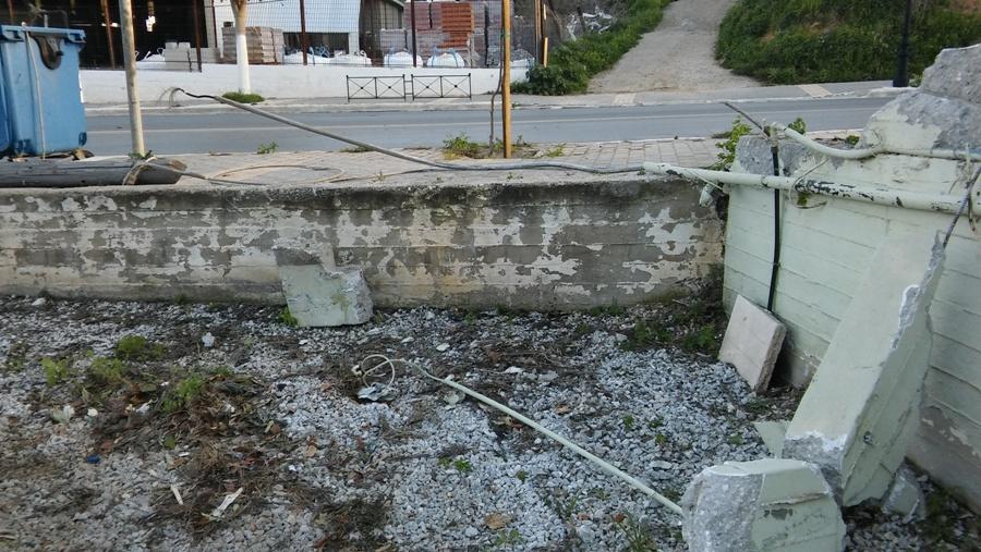 Μάλιστα όπως φαίνεται και στις σχετικές φωτογραφίες το όχημα στην τρελή πορεία έριξε το στύλο που βρίσκονταν πάνω στο πεζοδρόμιο.