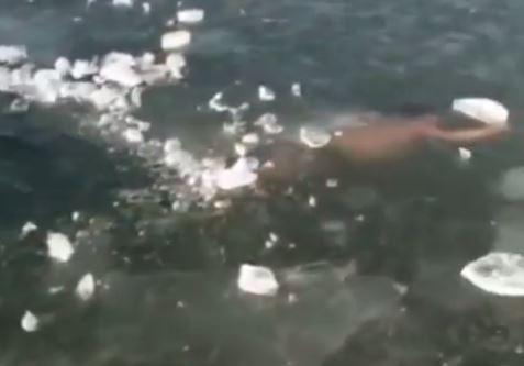 Ο άνδρας δεν καταλαβαίνει ότι κολυμπά κάτω από στρώμα πάγου και δεν υπάρχει διέξοδος για να βγει στην επφάνεια.
