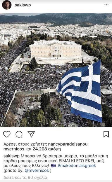 Ο παρουσιαστής του Survivor ανέβασε φωτογραφία απο το σημερινό συλλαλητήριο της Αθήνας στον λογαριασμό του και έγραψε: «Μπορεί να βρίσκομαι μακρυά, το μυαλό και η καρδιά μου όμως, είναι εκεί! Είμαι και εγώ εκεί, μαζί με όλους τους Έλληνες!».