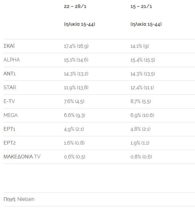 Τα άλλα κανάλια, όμως, είδαν τα ποσοστά τους να πέφτουν.