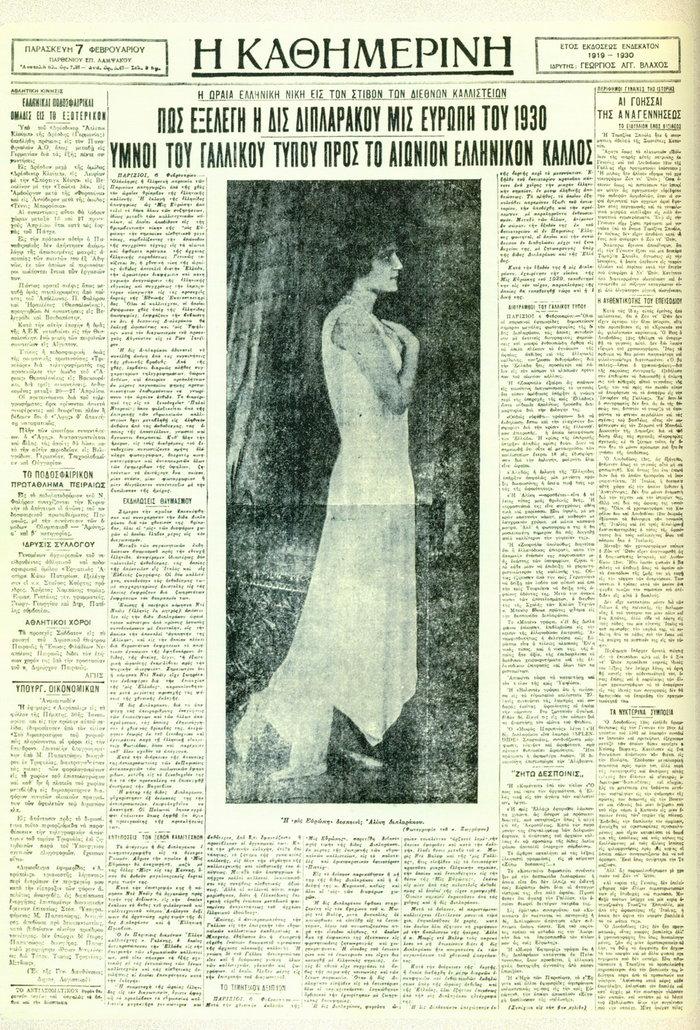 Η «Καθημερινή» της επομένης ανάγει τη νίκη της σε εθνικό θρίαμβο: «…Ολόκληρος η ελληνική παροικία των Παρισίων πανηγυρίζει από της χθες τον ωραίον θρίαμβον της ελληνικής καλλονής. Η εκλογή της ελληνίδος υποψηφίας ως «Μις Ευρώπη» αποτελεί το θέμα όλων των συζητήσεων, ιδίως μεταξύ των καλλιτεχνικών κύκλων, οι οποίοι αποδίδουν εις την θριαμβευτικήν νίκην της «Μις Ευρώπη» την σημασίαν αισθητικού γεγονότος, συμβολίζοντος την επάνοδον της συγχρόνου τέχνης εις τα αιώνια και άφθαστα πρότυπα της αρχαίας ελληνικής παραδόσεως. Γενικώς τονίζεται ότι η χθεσινή νίκη της ωραίας Ελληνίδας αποτελεί δια την Ελλάδα, την ωραιοτέραν διαφήμισιν και πανηγυρικήν αναγνώρισιν της ελληνικής ευγενίας και συγχρόνως την λαπροτέραν εισαγωγήν εις τας προσεχείς εορτάς της Εθνικής εκατονταερτηρίδος…»