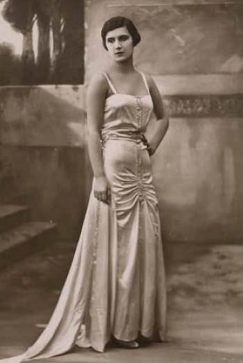 Να πως περιγράφει την εμφάνισή της η «Βραδυνή» της 14ης Ιανουαρίου 1930: «…φοράει ένα γαλάζιο πενουάρ με μια γουνίτσα λευκή στο λαιμό που κυματίζει αρμονικά, σύμφωνα με τις κινήσεις του φειδίσιου κορμού, που όλο μαζί είναι ένα ποίημα. Ηγεμονικό παράστημα, χάρις και αρμονία κινήσεων, βάδισμα μεγαλοπρεπές, ελαφρότης νεράιδας. Τα δυο υπογάλανα μάτια της σπινθηροβολούν ασυνήθιστα, δείχνουν ένα πάθος ακαθόριστο, μια μελαγχολική διάθεση, που είναι αποτέλεσμα υπερβολικής αισθηματικότητας.(…) Κι έπειτα τα λεπτότατα χείλη που υπομειδιούν διαρκώς, με μια ανείπωτη γλυκύτητα.(…) Λαιμός χυτός, χέρια λεπτά, μπράτσα τορνευτά, που λεπταίνουν όσο ανεβαίνουν και απολήγουν σε λεπτότατα δάκτυλα, όπως μια μελωδία που σβήνει. Και το φινάλε, τα μακριά υπόξανθα μαλλιά, που κυματίζουν πάνω στους ώμους».