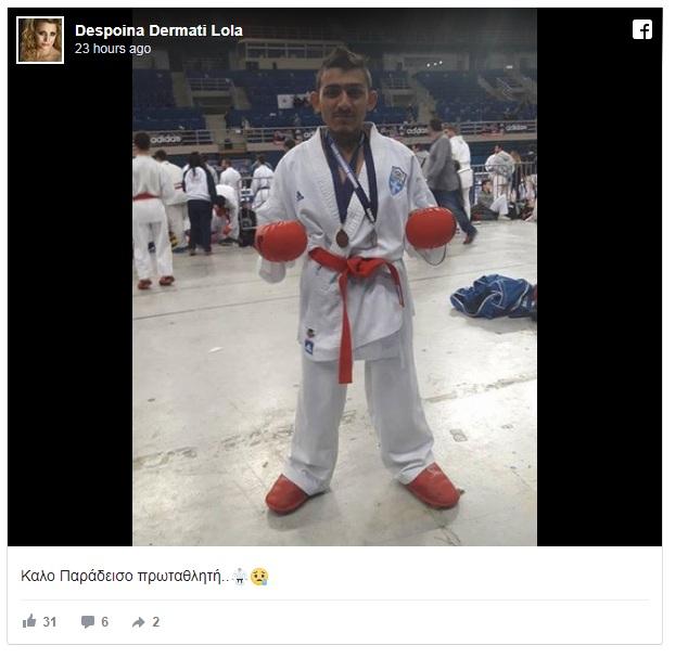 Ο θάνατός του ήταν ακαριαίος, ενώ η τραγική είδηση σκόρπισε τη θλίψη σε όσους τον γνώριζαν. Ο νεαρός ήταν ιδιαίτερα αγαπητός, αθλητής του shotokan καράτε και του ΑΣ «Ερυξίας» ο Χαλκιδαίος, με την προπονήτρια Δέσποινα Δερμάτη να τον αποχαιρετά μέσω του λογαριασμού της στο Facebook: