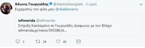 Τον Νικήτα Κακλαμάνη ευχαρίστησε δημόσια μέσω Twitter ο Άδωνις Γεωργιάδης.
