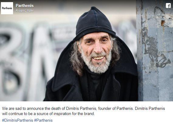 Η κόρη του Δημήτρη Παρθένη, που πέθανε, το Σάββατο, σε ηλικία 74 ετών, ανέβασε στο διαδίκτυο την παράκληση της οικογένειας «αντί στεφάνων, τα χρήματα να διατεθούν στην Πνοή Αγάπης, τον Σύλλογο Εθελοντών Κοινωνικής και Συναισθηματικής Στήριξης Ανθρώπων με Καρκίνο και των Οικογενειών τους, που επιτελεί έργο στο αντικαρκινικό νοσοκομείο Άγιος Σάββας».