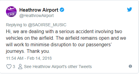 «Θα συνεργαστούμε πλήρως με την αστυνομία στην έρευνα που θα ακολουθήσει», ανέφερε το Χίθροου σε ανακοίνωση. Το αεροδρόμιο δεν έκλεισε μετά το επεισόδιο.