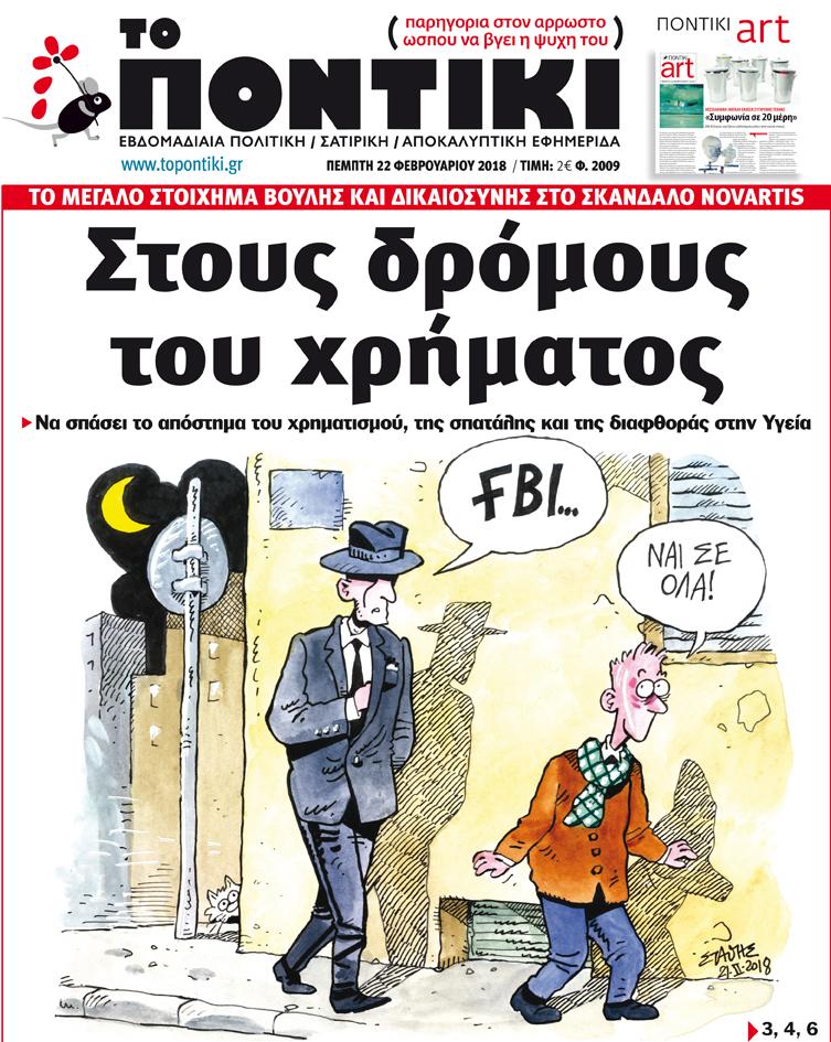Με πρωτοσέλιδο τίτλο «Στους δρόμους του χρήματος» και αναλυτικό-αποκαλυπτικό ρεπορτάζ για το μεγάλο στοίχημα της Βουλής και της Δικαιοσύνης στο σκάνδαλο Novartis.