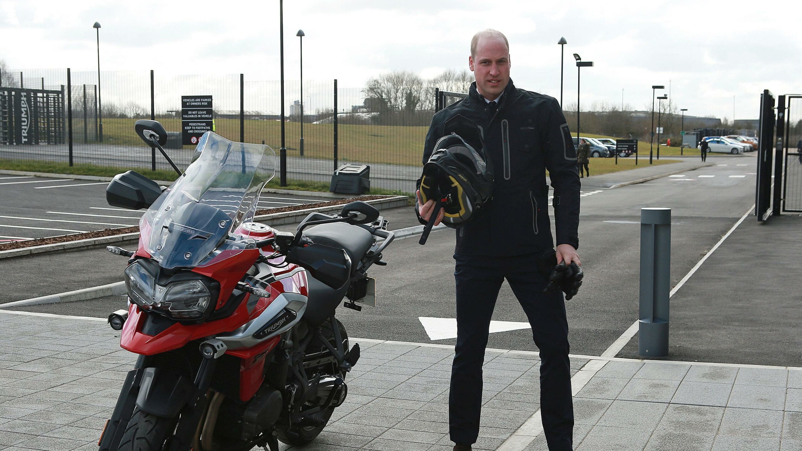 Ο Ουίλιαμ, γνωστός ενθουσιώδης λάτρης των μηχανών, έκανε test drive σε μία Triumph Tiger 1200. Και προτού ξεκινήσει, φορώντας το κράνος (η ασφάλεια πρώτα) και το μπουφάν μοτοσυκλέτας – με παπούτσια σουέτ – φωτογραφήθηκε.