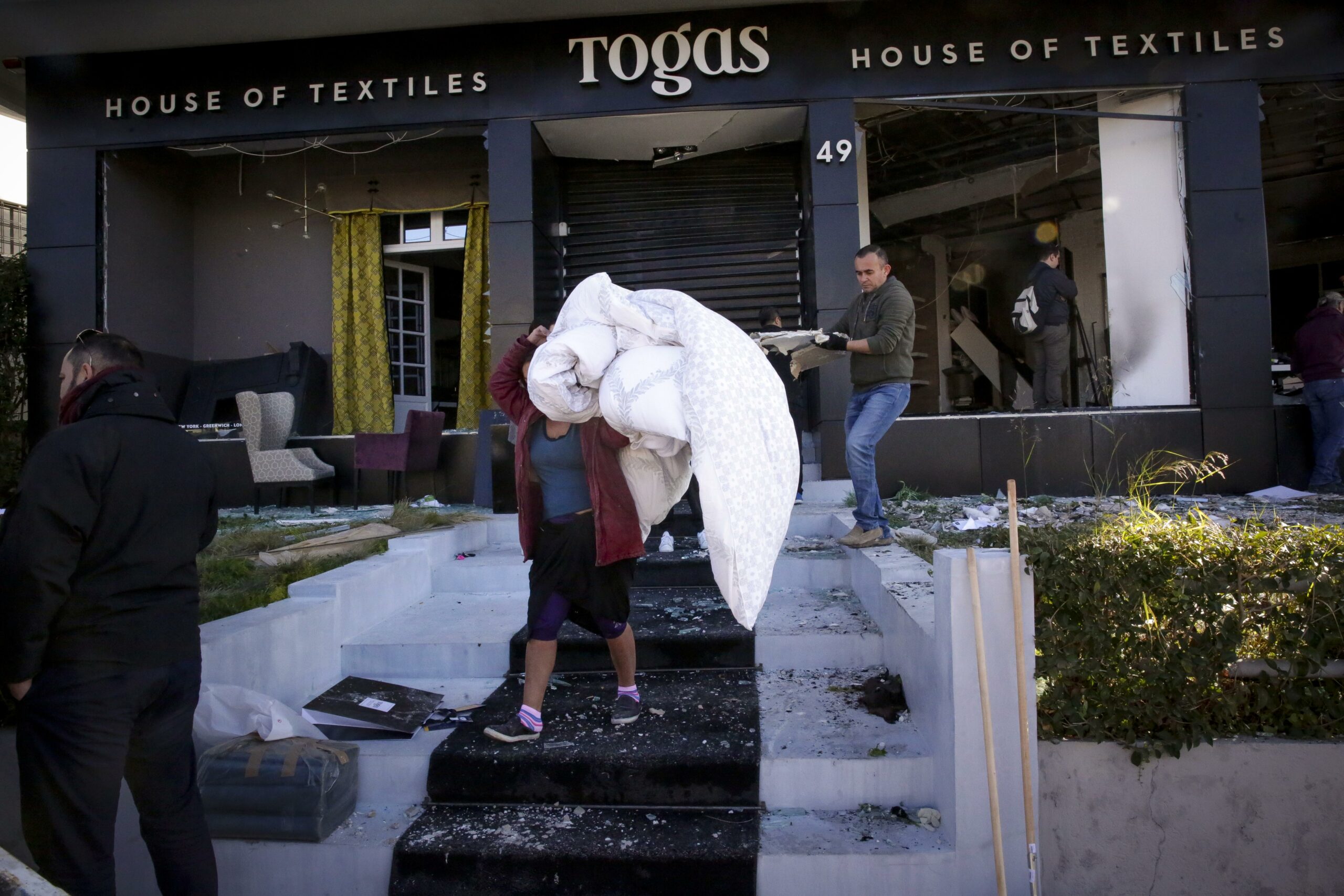 Το κατάστημα επίπλων ισοπεδώθηκε από την ισχυρότατη έκρηξη, με τον ιδιοκτήτη να δηλώνει στην τηλεόραση του ΣΚΑΪ ότι δεν γνωρίζει τι μπορεί να έχει προκαλέσει την έκρηξη στο κατάστημά του.