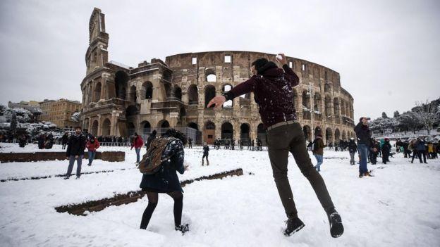 Χιόνι και στο Κολοσσαίο στη Ρώμη
