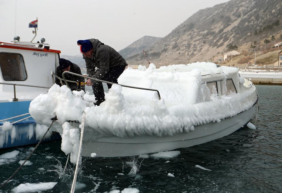 Βάρκα καλυμμένη με πάγο στην Κροατία
