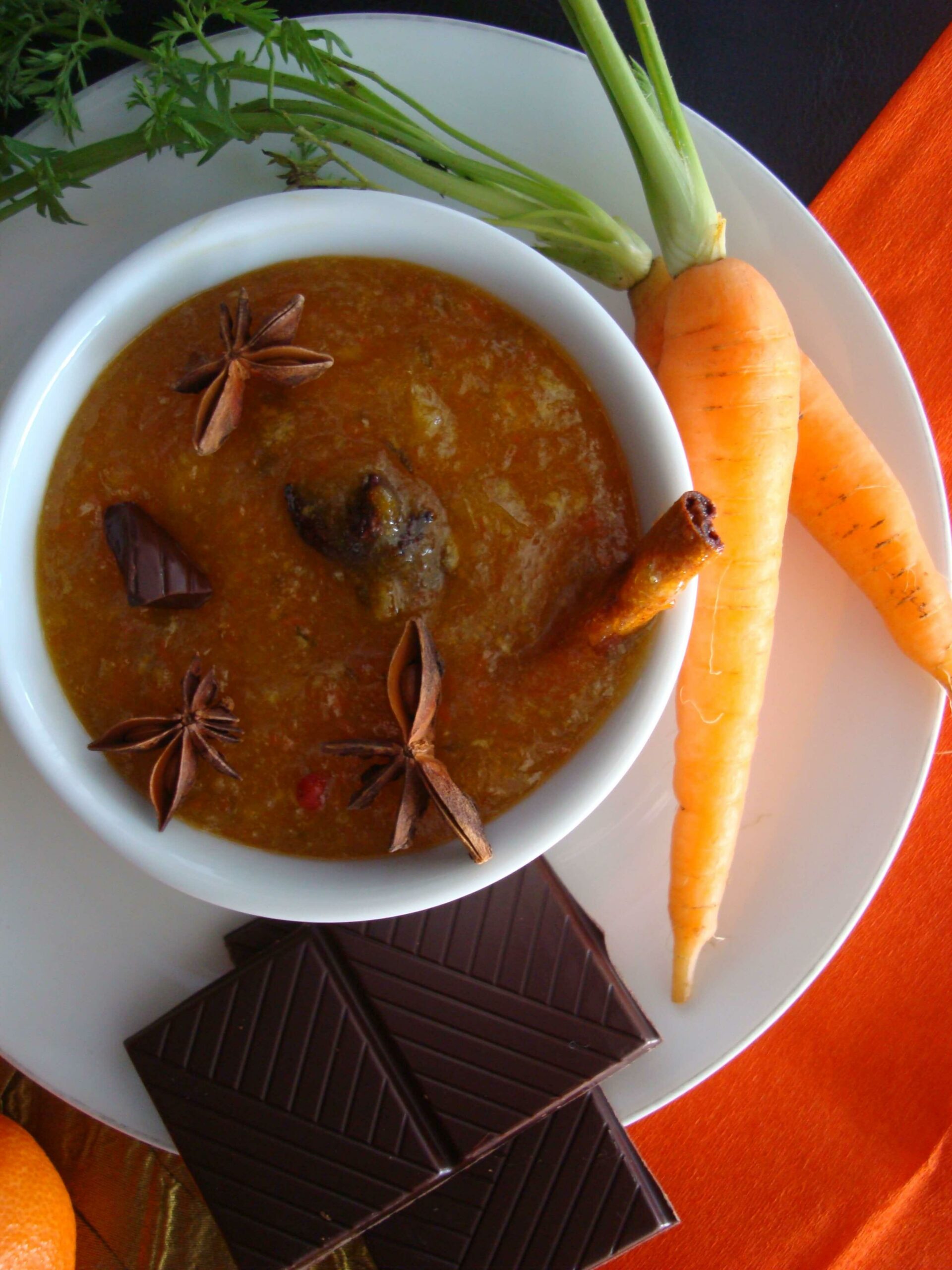 Τα κόβουμε σε κομμάτια αφαιρώντας τα κουκούτσια που τυχόν έχουνε και τα αλέθουμε καλά στο μούλτι. Ζυγίζουμε 1250 γραμμάρια από την πούλπα των φρούτων και τη ρίχνουμε σε μια καθαρή κατσαρόλα. Προσθέτουμε στην κατσαρόλα τριμμένο καρότο στον τρίφτη 250 γραμμάρια. Βάζουμε 1500 γραμμάρια ζάχαρη κοινή κρυσταλλική και ξεκινάμε να βράζουμε. Αν υπάρχει αφρός τον αφαιρούμε πάντα με προσοχή.