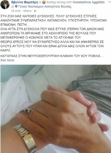 Όλα αυτά στη δυσκολία που μας έτυχε (πέραν των δικών μας ανθρώπων) τα βρήκαμε στο Ασκληπιείο της Βούλας που μεταφέρθηκε ο Κωνσταντίνος μετά το ατύχημά του.
