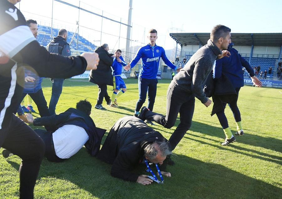 Τελικά, οι πιο ψύχραιμοι συγκράτησαν τον τεχνικό του ΠΑΟΚ και κάπου τελείωσε αυτό το πρωτοφανές περιστατικό…
