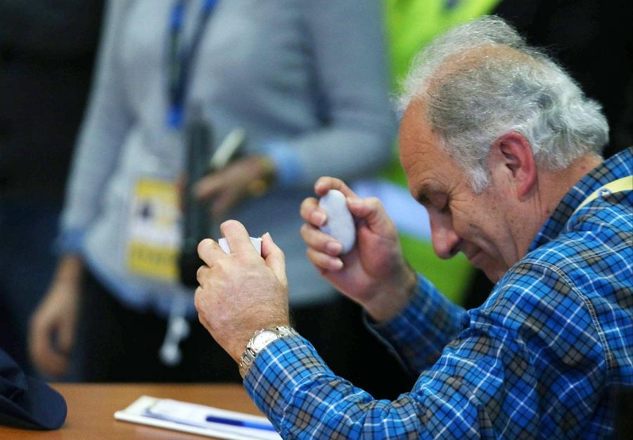 Ένας δημοσιογράφος έβγαλε ένα ρολό ταμειακής μηχανής (λίγες ημέρες μετά τα όσα συνέβησαν στην Τουμπα στο ΠΑΟΚ-Ολυμπιακός) και μια πέτρα. «Είναι το ίδιο να σε χτυπάει πέτρα και το ίδιο ρολό;», είπε, αναφερόμενος στον Ρουμάνο τεχνικό.