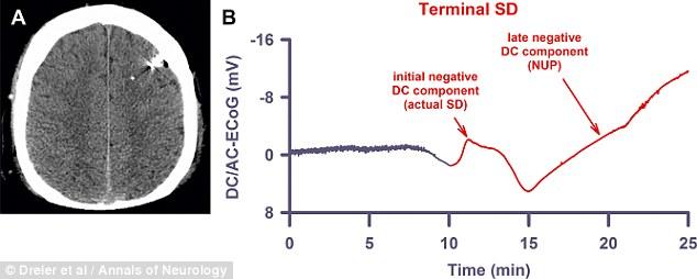 Το πιο εντυπωσιακό στοιχείο, ωστόσο, είναι το εξής. Το τελευταίο λεπτό πριν «κλείσει» ο εγκέφαλος, εμφανίζεται ένα «τσουνάμι» αντιδράσεων, τις οποίες οι επιστήμονες χαρακτήρισαν «εξάπλωση της κατάθλιψης».