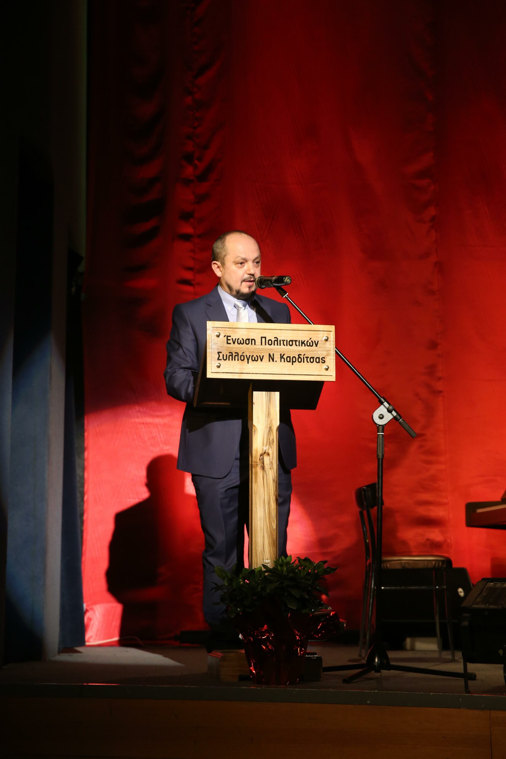Ο πρόεδρος της Ενωσης Πολιτιστικών Συλλόγων Καρδίτσας ποιητής κ. Μαν. Στεργιόπουλος