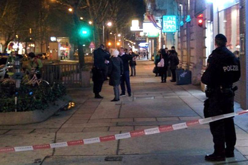 Η πρώτη από τις επιθέσεις διαπράχθηκε περί τις 19:45 τοπική ώρα (20:45 ώρα Ελλάδας) στην Πράτερστρασε, έξω από εστιατόριο ιαπωνικής κουζίνας, κοντά σε σταθμό του μετρό, στο δεύτερο διαμέρισμα της πόλης, που συμπεριλαμβάνει το γνωστό πάρκο Πράτερ και τον συγκοινωνιακό κόμβο