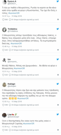 Η συζήτηση αυτή σχολιάστηκε έντονα στο διαδίκτυο με αμέτρητους χρήστες να επιτίθενται στον Μιχάλη Μουρούτσο καθώς έκριναν προσβλητική την τοποθέτησή του απέναντι στην Κωνσταντίνα.