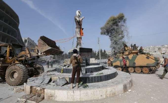 Οι τουρκικές δυνάμεις και οι Σύριοι σύμμαχοί τους προκάλεσαν σήμερα ζημιές και έριξαν άγαλμα που συνδέεται με την κουρδική παράδοση και τον πολιτισμό στο κέντρο της πόλης Αφρίν, ανακοίνωσε ομάδα των Συριακών Δημοκρατικών Δυνάμεων των οποίων ηγούνται οι Κούρδοι στο Whatsapp, επικαλούμενη κέντρο ενημέρωσης στο Αφρίν.