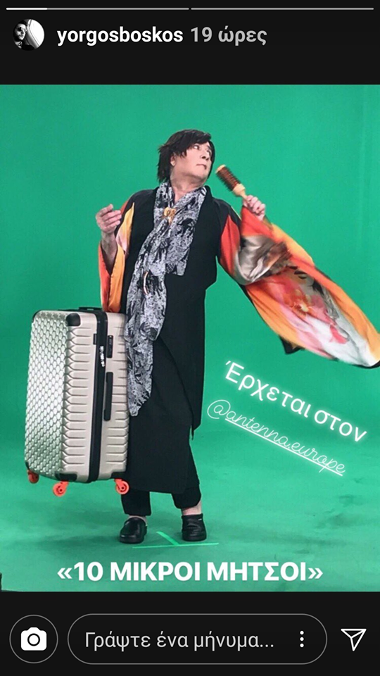 Ο Λάκης Λαζόπουλος φαίνεται μεταμφιεσμένος σε έναν πιαθανότατα νέο χαρακτήρα και βρίσκεται μπροστά από ένα green box.